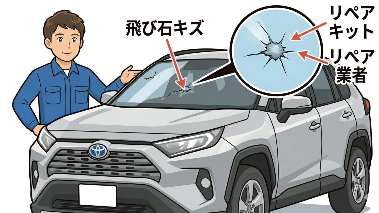 運転席側の視界に入る場所にあるキズや、1.5cm以上の大きさのヒビがある場合、車検に通らない確率が非常に高くなります。小さなキズであれば、カー用品店で売られている市販のガラスリペアキット(数千円)で補修するか、専門業者にリペアを依頼することで、高額なフロントガラスの全交換(10万円〜)を回避できます。